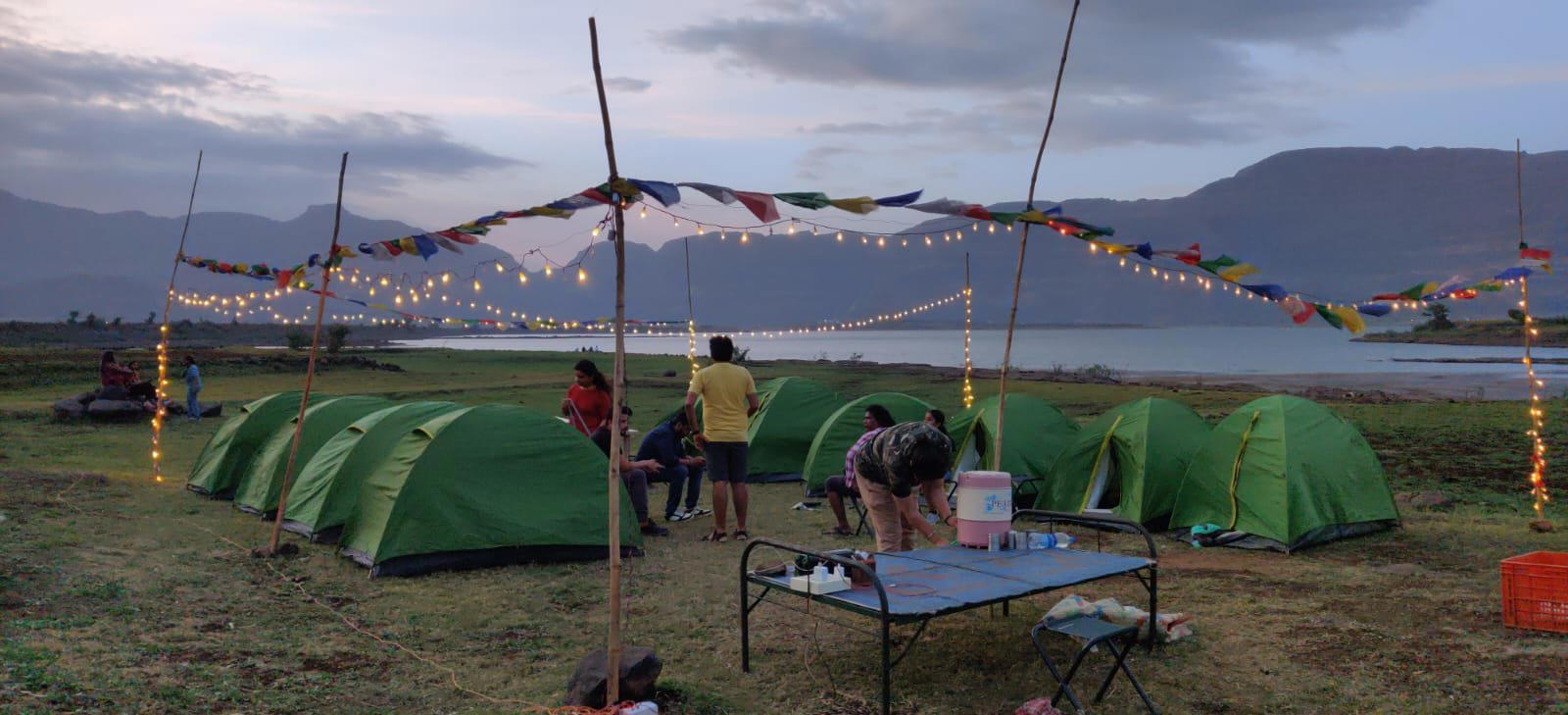 Excellent camping destination near Pune. Relax at the Natural beauty of the region, lakeside camping, trekking, Valley facing stay. Stay in a tent having a lake view. Walkthrough the forest and the rice fields during the trek. Enjoy the foggy weather.